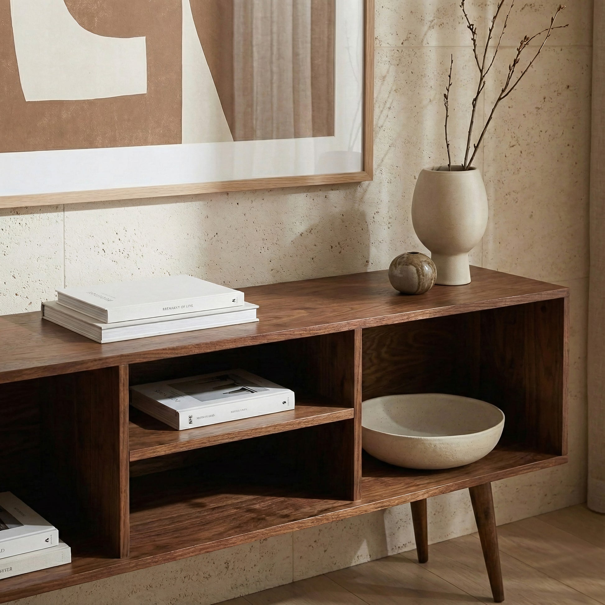 Minimalistyczna forma, maksymalna otwartość. Komoda OPEN to mebel, który daje przestrzeń — dosłownie i w przenośni. Bez uchwytów, bez drzwi, za to z miejscem na wszystko, co chcesz mieć pod ręką. Idealna pod telewizor, ale sprawdzi się także jako otwarta biblioteka lub miejsce na kolekcje. Niewymuszony styl z nutą retro.