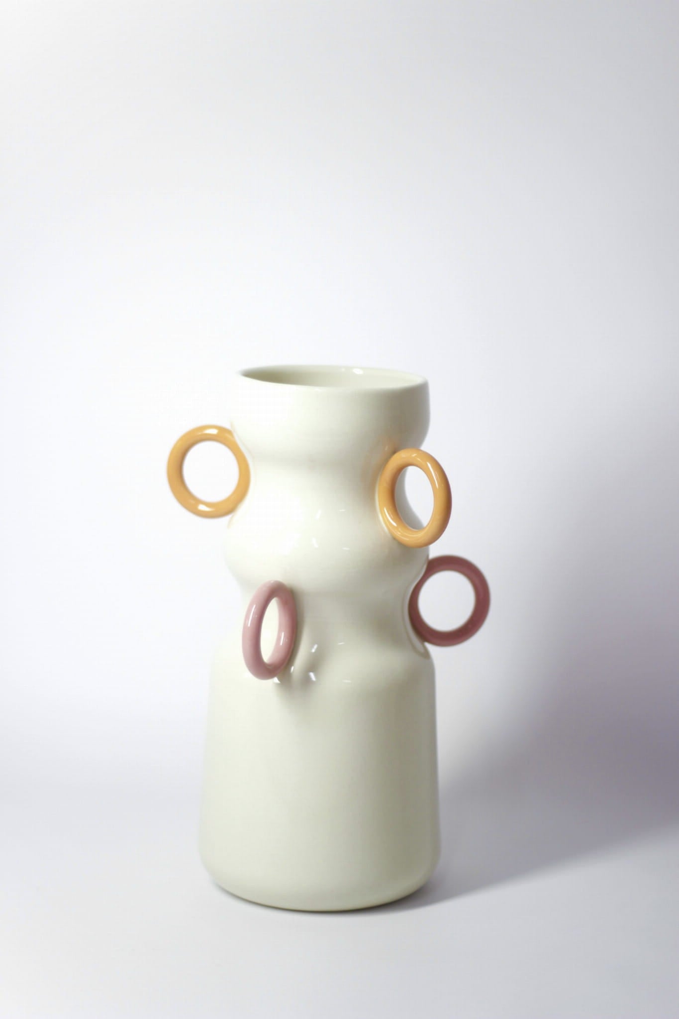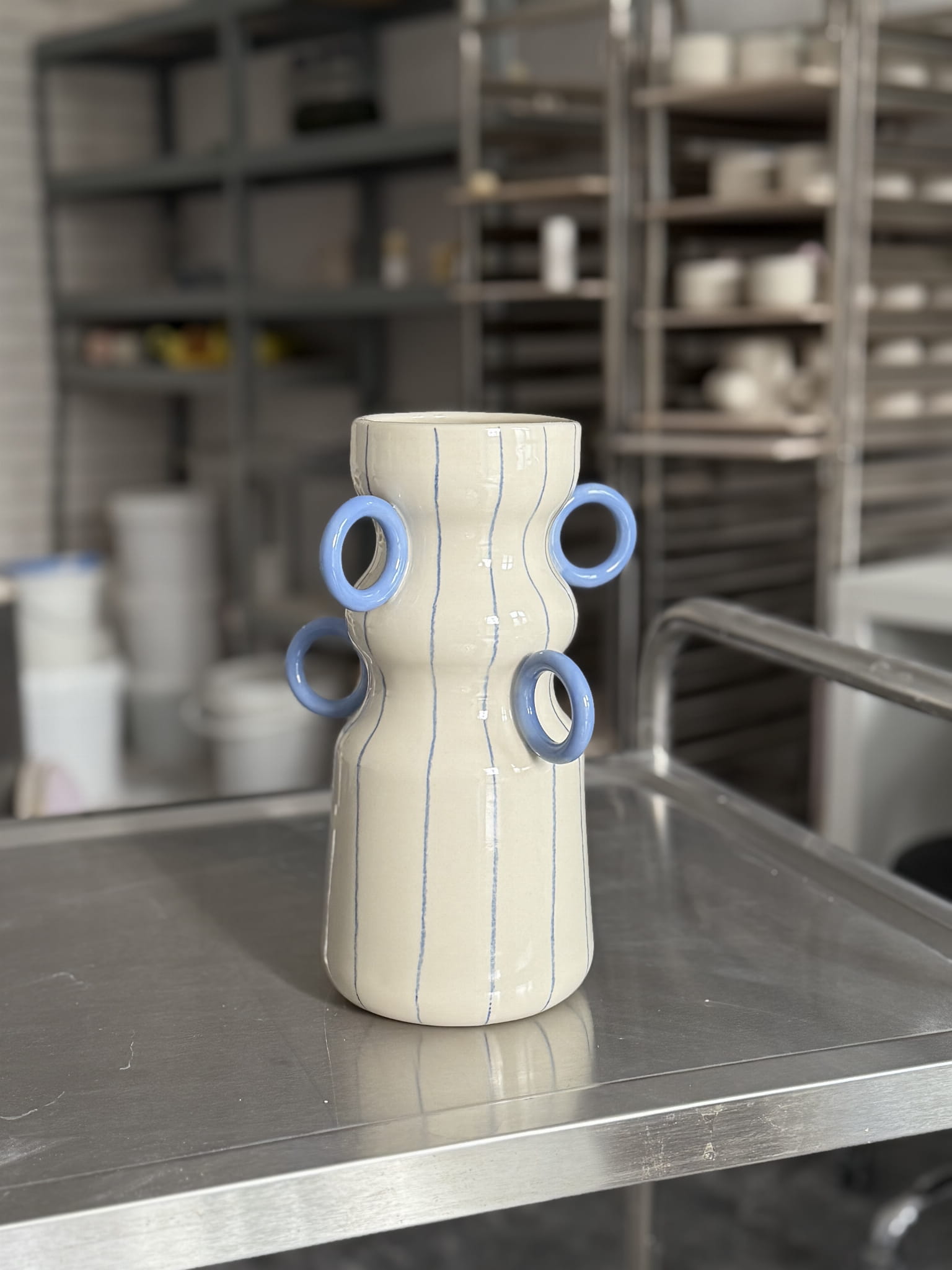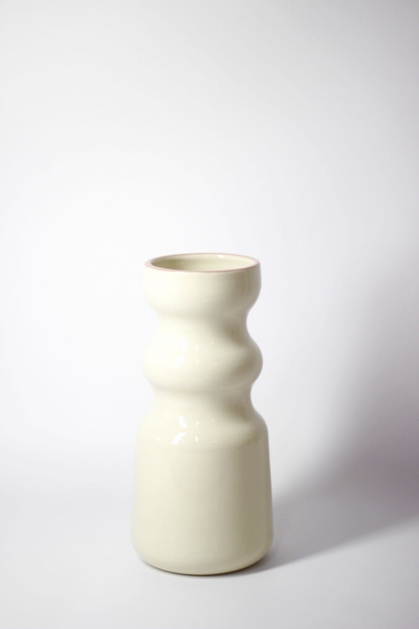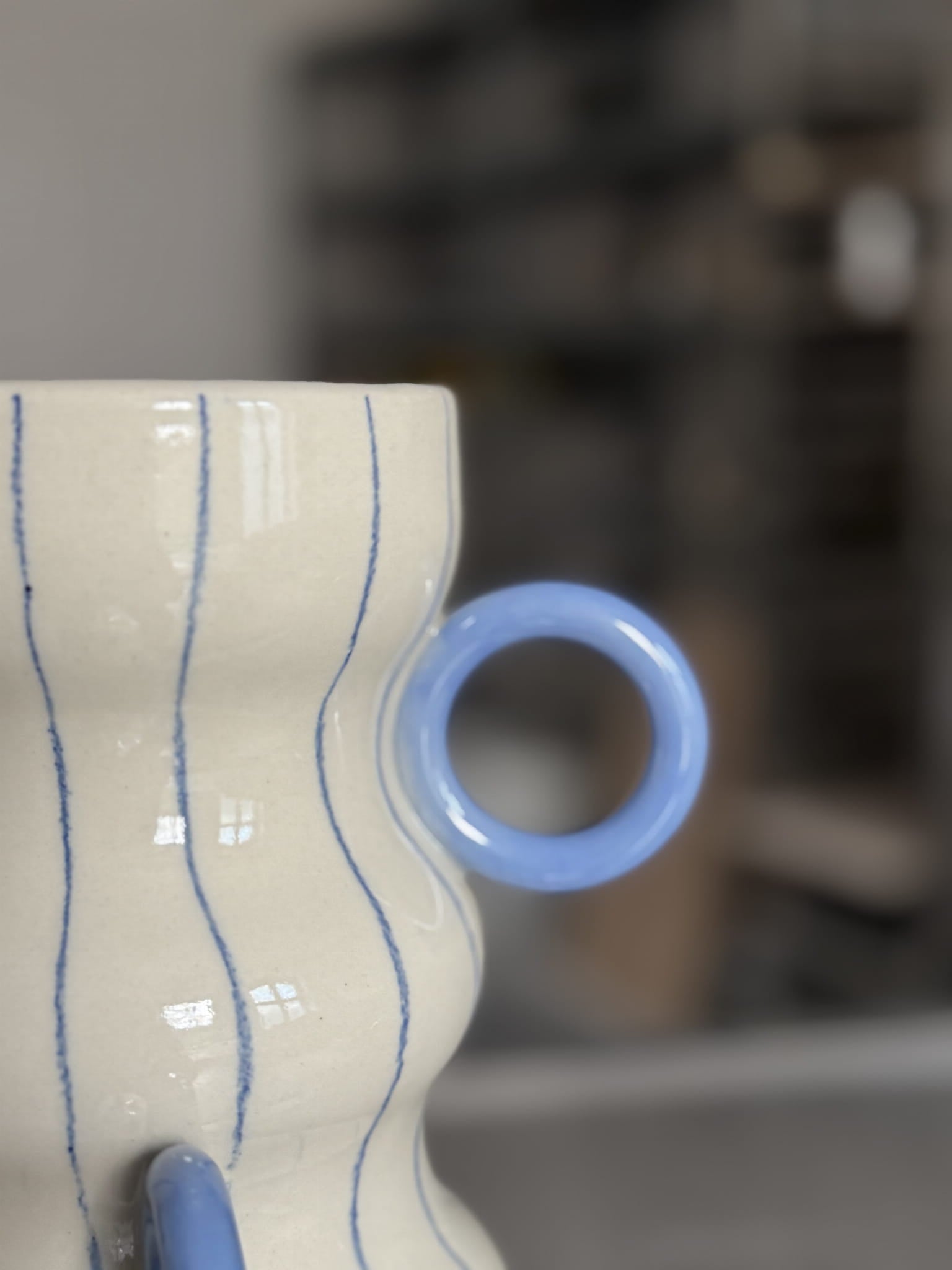 A hand-painted stoneware vase, fired at 1230°C, with a distinctive form that brings character and elegance to any space. Its sculptural presence makes it just as striking with flowers as it is on its own.