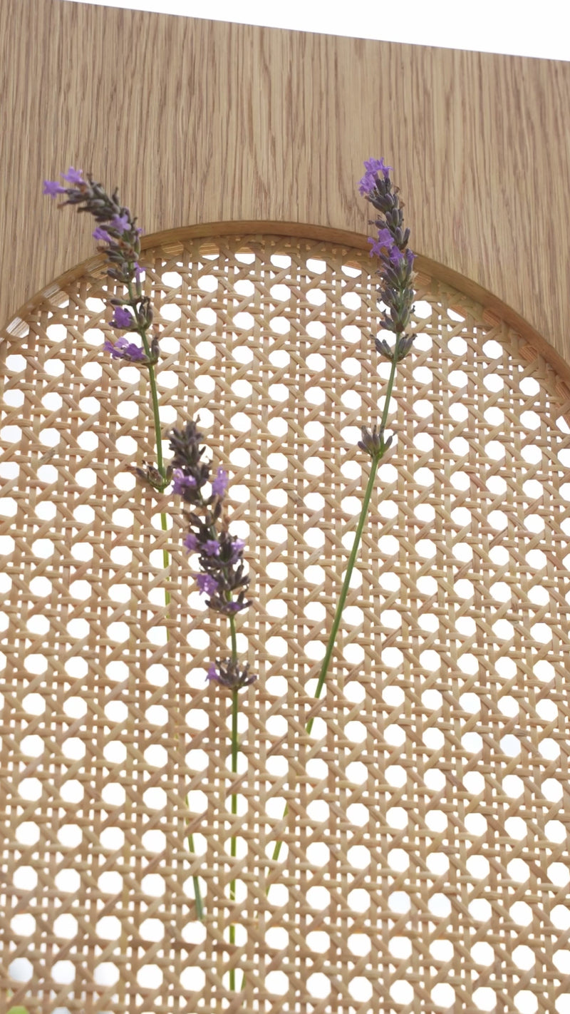 With its tall silhouette and oval rattan inlays, MOON exudes a sense of lightness and natural charm. This highboard brings warmth, calm, and a touch of Scandinavian minimalism to any interior.